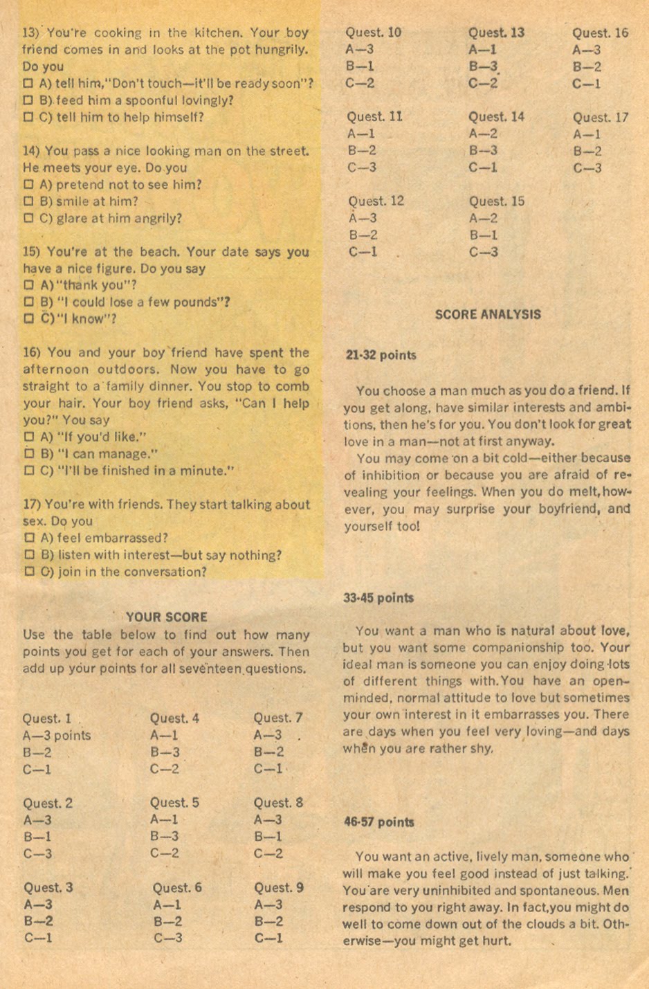 Most every romance book had some sort of filler, whether it be a text article or as seen here in this issue of Love Stories, a quiz! Go ahead, take it yourself -- how sexy are you? I'll wait.